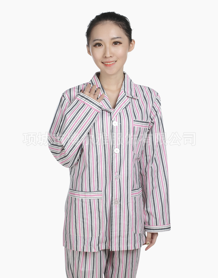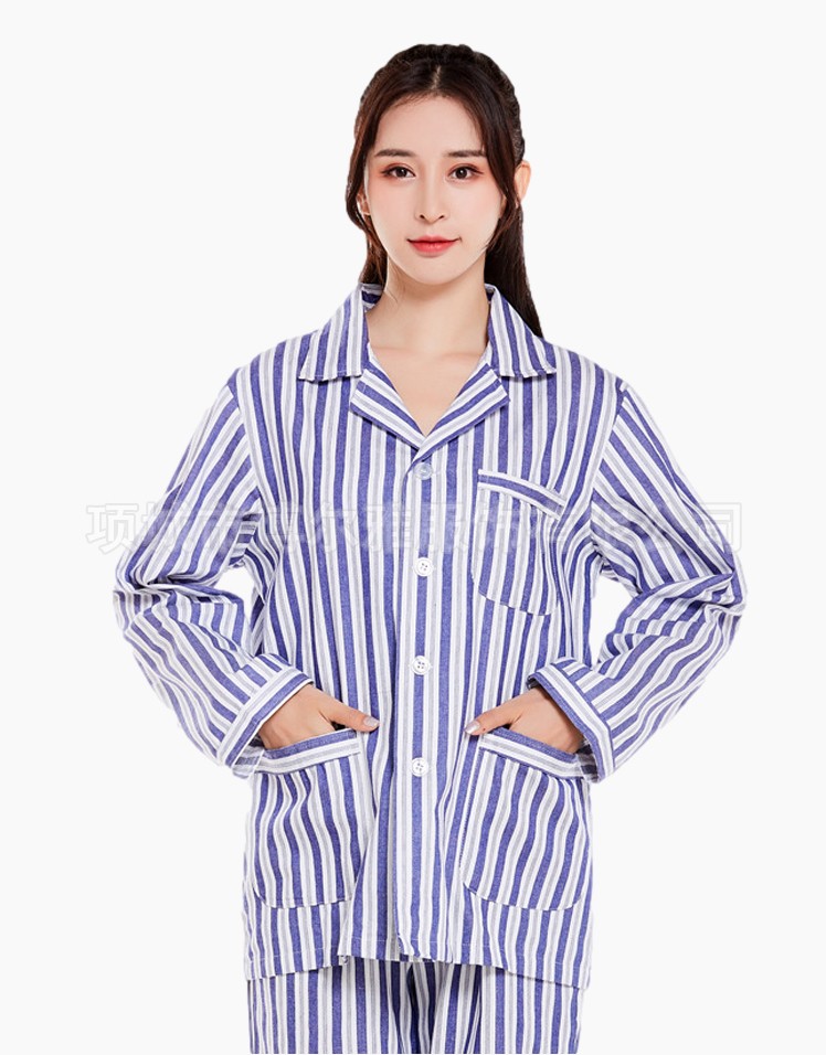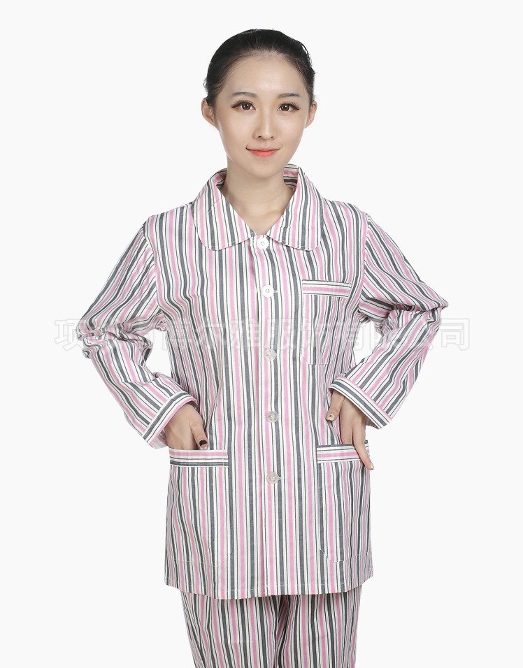 病號男女藍條粉條西服領長袖